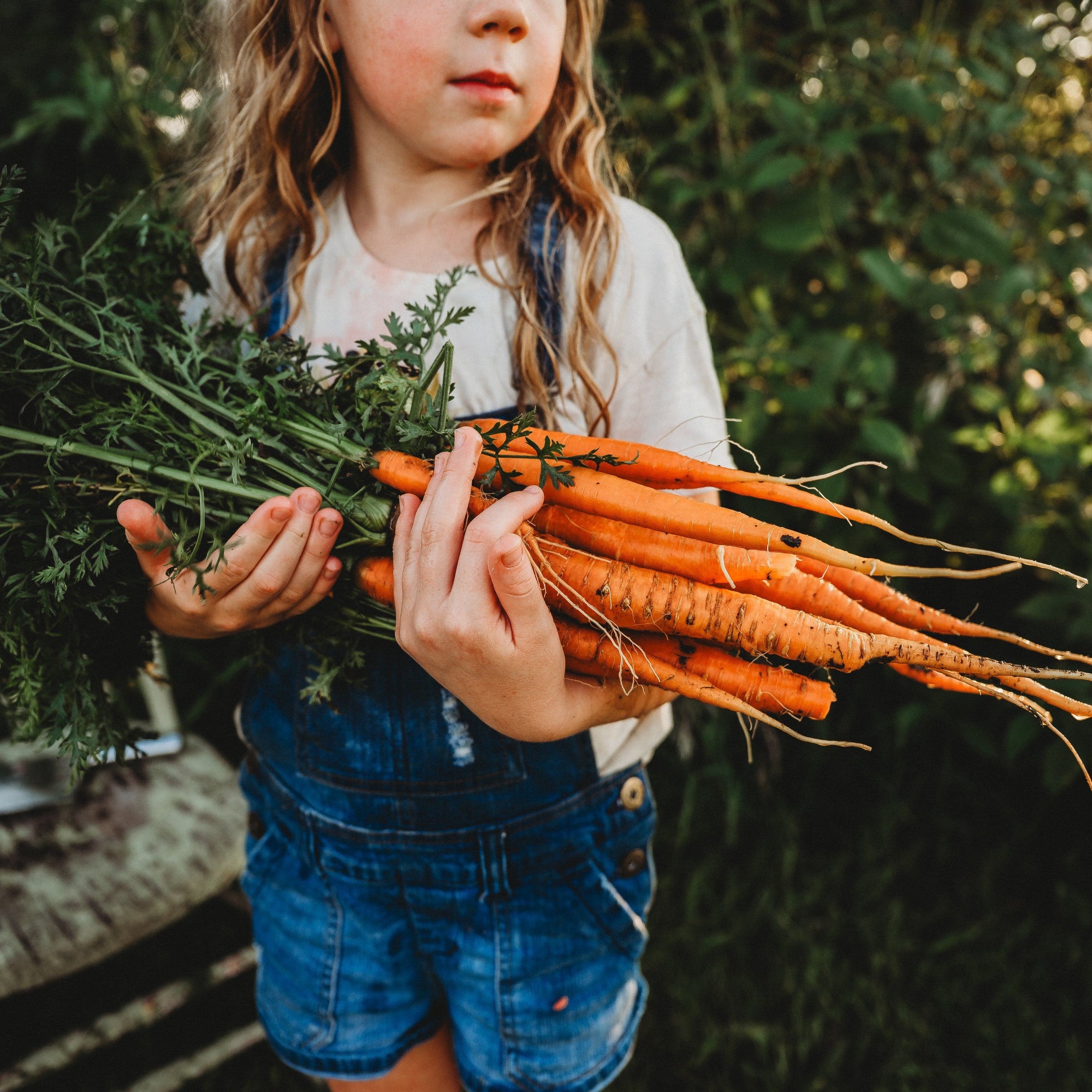 To harvest carrots, gently loosen the soil around the roots with a garden fork or trowel, taking care not to damage the roots. Lift the carrots out of the soil by the tops, and brush off any excess dirt. Trim the tops to 1 inch above the crown, and rinse the carrots thoroughly in cool water. To store carrots, remove any damaged or diseased roots, and store them in a cool, dark, and humid location. Carrots can be stored in a perforated plastic bag in the refrigerator or in a root cellar or cool basement, with the roots buried in damp sand or sawdust to maintain moisture. With proper storage, carrots can keep for several months.