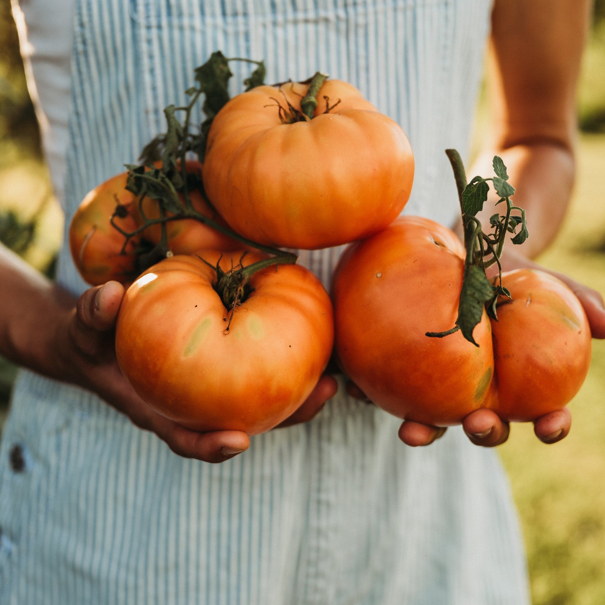 The Kellogg’s Breakfast tomato is a glowing orange beefsteak, often tipping the scales at a pound or more, with juicy, meaty flesh and a rich, sweet flavor. Renowned heirloom tomato expert Carolyn Male praised it in 100 Heirlooms for the American Garden, writing: “There isn’t another large orange beefsteak variety that I’d rather grow than Kellogg’s Breakfast. The whopping taste of this mighty tomato is truly unequaled, and it’s juicy and meaty at the same time.”