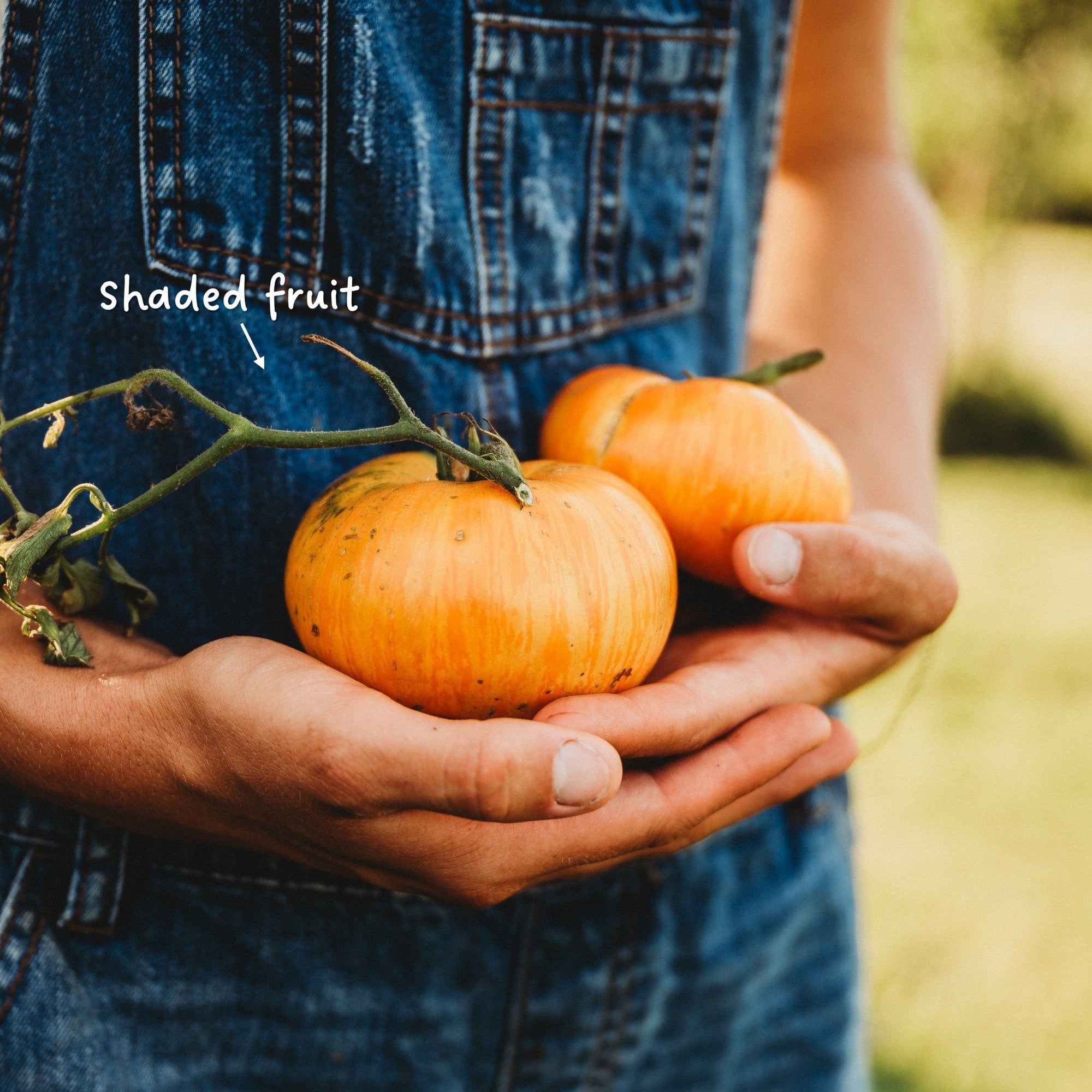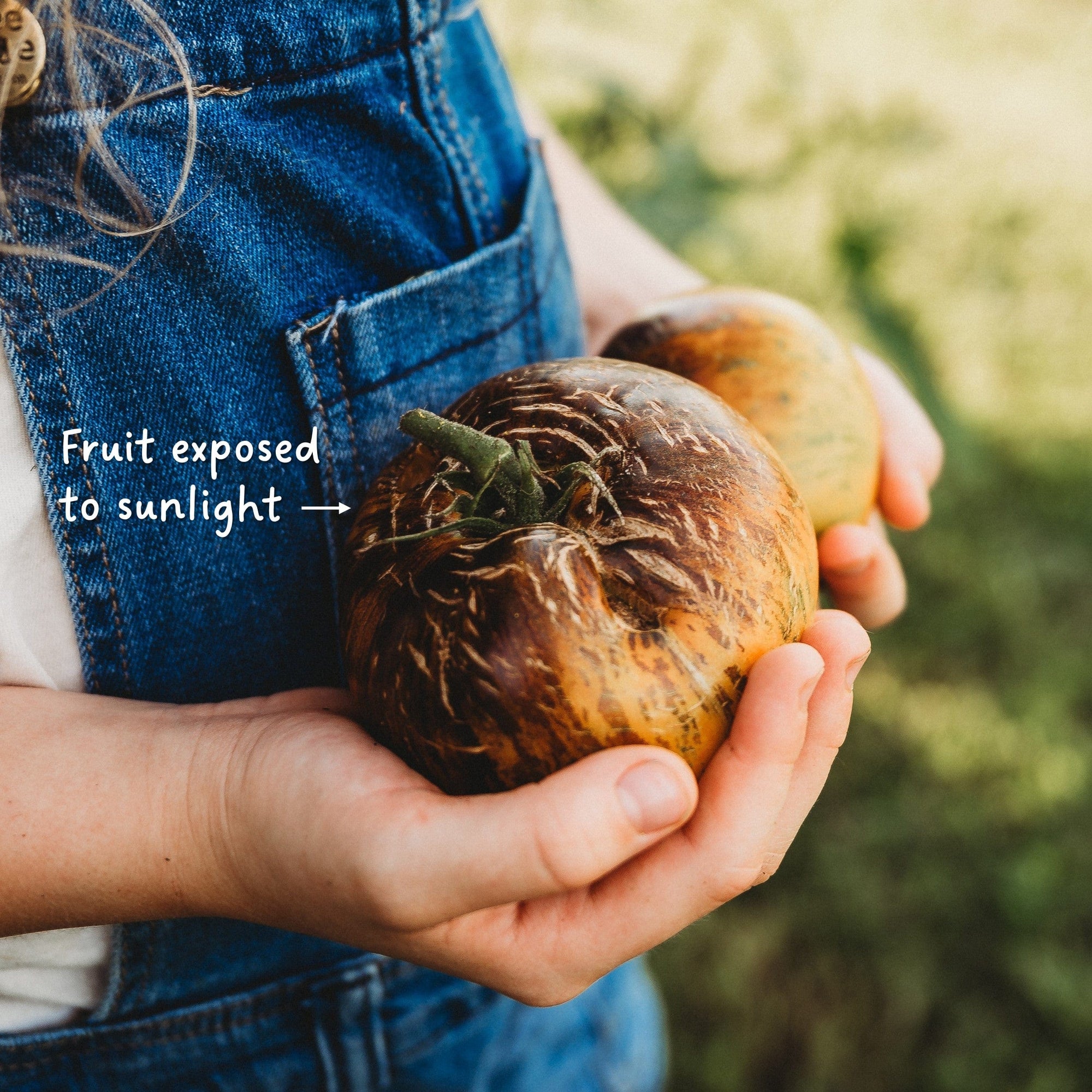 The indigo coloration across the shoulders deepens with sunlight exposure—fruit grown in full sun develops a rich... read more