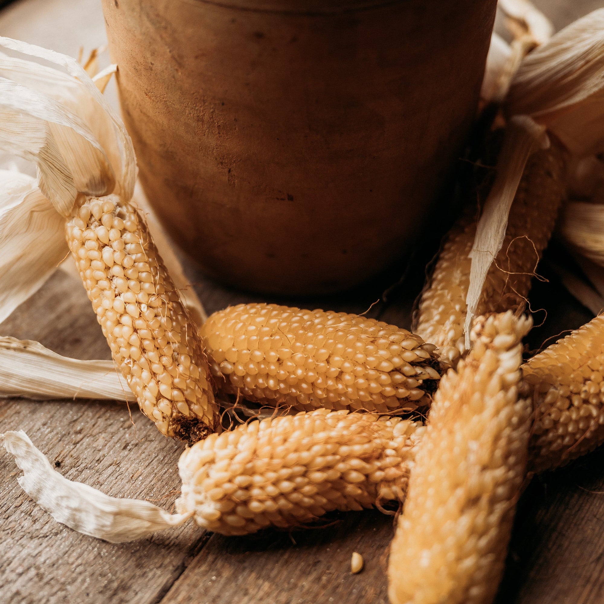 Burro Mountain is a small-eared white rice popcorn with a fascinating story.  Donated to the USDA in 1985, the seeds were reportedly found inside a clay pot discovered in the Burro Mountains of Grant County, New Mexico. According to accession notes, the vessel was estimated to be between 600 and 1,000 years old. While details of the original archaeological context are limited, the account places this corn within a region long associated with ancient maize cultivation.