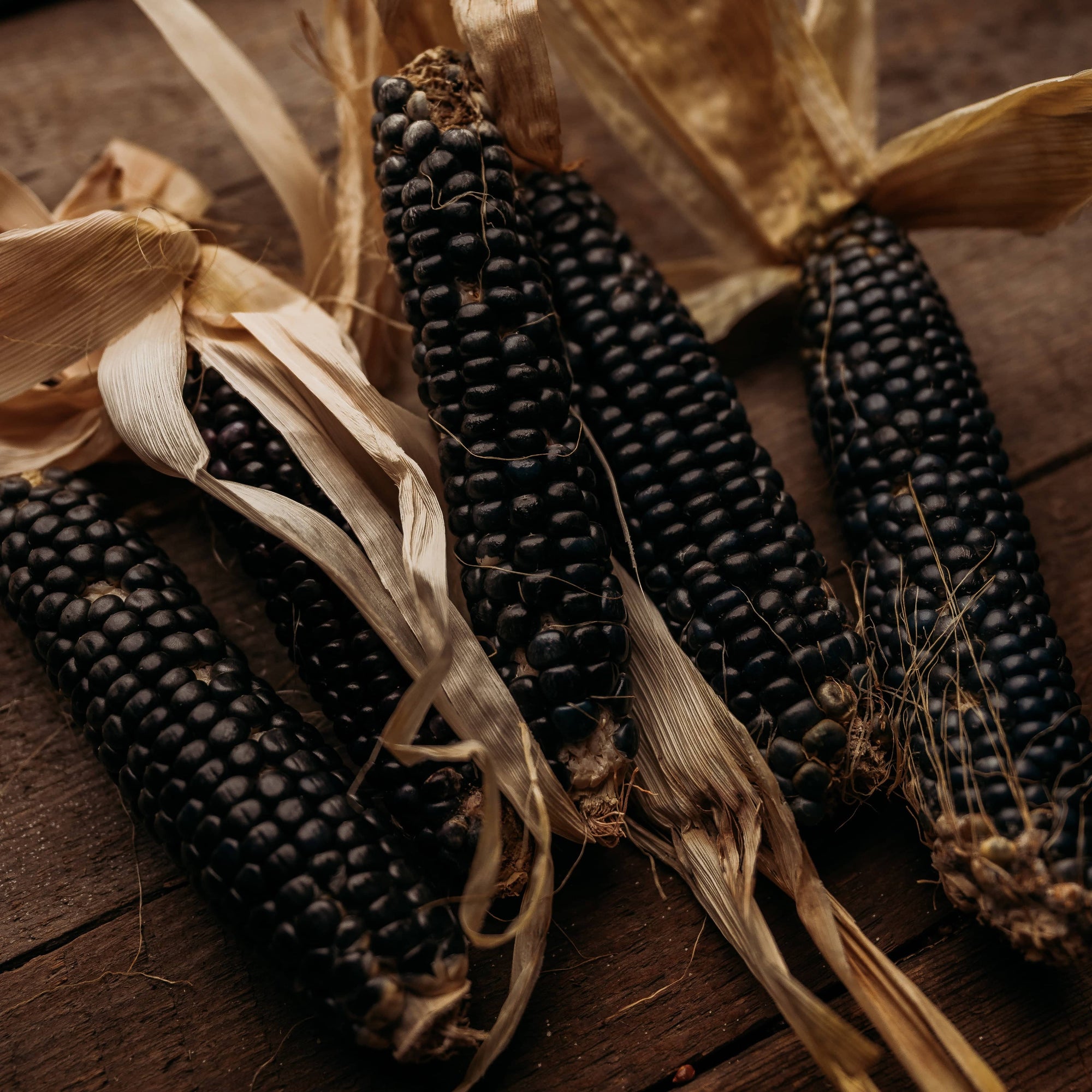Blue Fox Flour Corn is an Indigenous flour corn that produces glossy, round, dark blue kernels traditionally ground into a vibrant blue flour. According to USDA GRIN records, the variety was traded to the Sac and Fox (Meskwaki) people sometime in the mid-20th century and is understood to have originated with the Kickapoo, who reportedly used it for ceremonial feast foods. Its survival reflects a long tradition of intertribal exchange among tribes of the central regions.