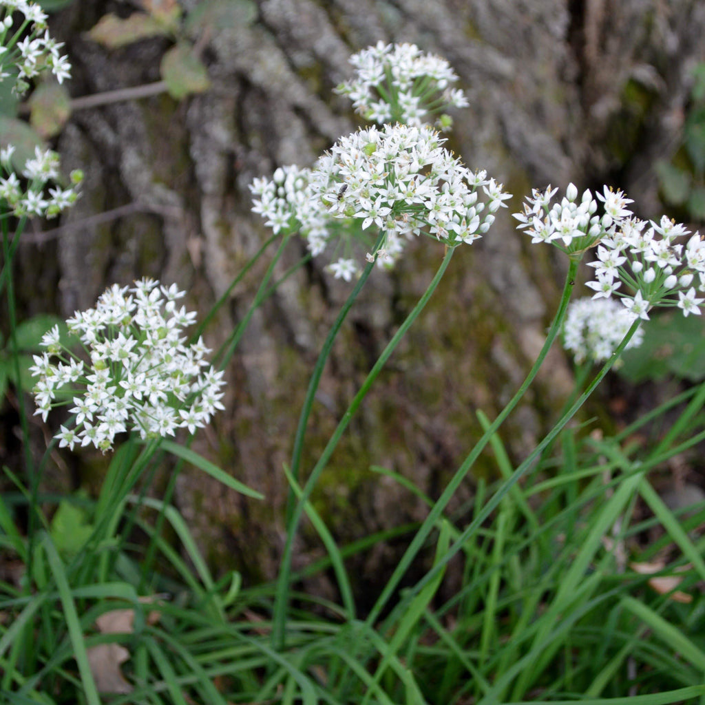 Garlic Chives is a perennial herb that produces flat, garlic-flavored leaves well-suited for use as a flavor enhancer or garnish.  Garlic chives are among the first of our herbs to green up in the spring and after a long colorless winter, I'll admit that I sometimes go a little overboard, adding fresh garlic chives to almost every dish until my husband finally complains.  It's a perennial overindulgence that I am happy to repeat.  Plants are healthy and productive, and leaves regenerate quickly after cutting.  Produces white clusters of flowers which eventually give rise to small, black seeds.  Garlic chives reproduce by rhizomes and by self-seeding, making them an excellent ground cover or edging plant. Each packet contains a minimum of 100 seeds.